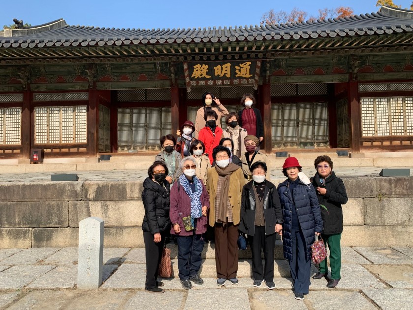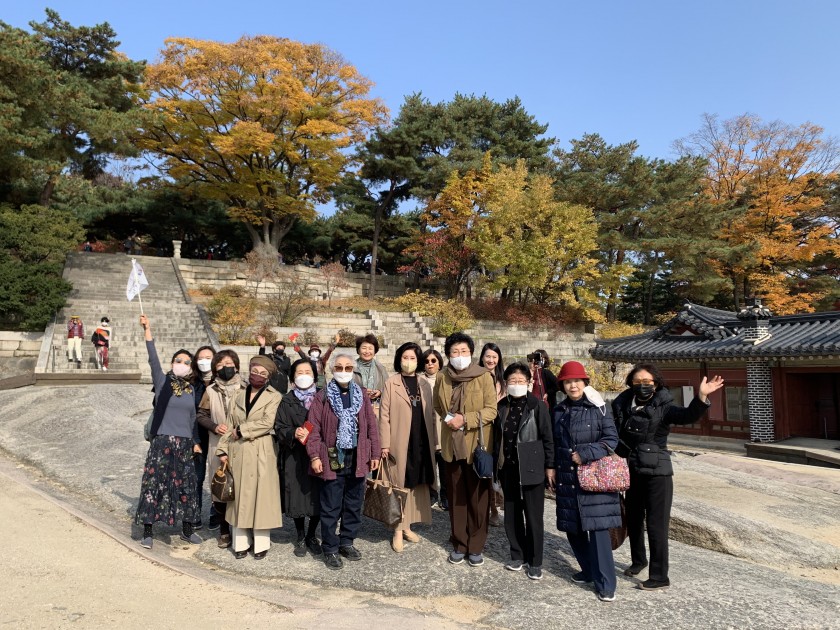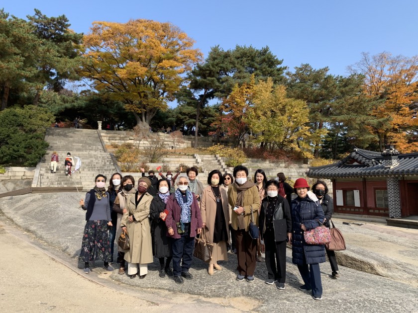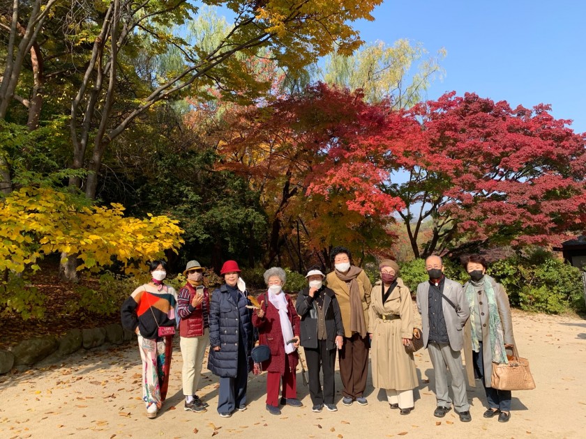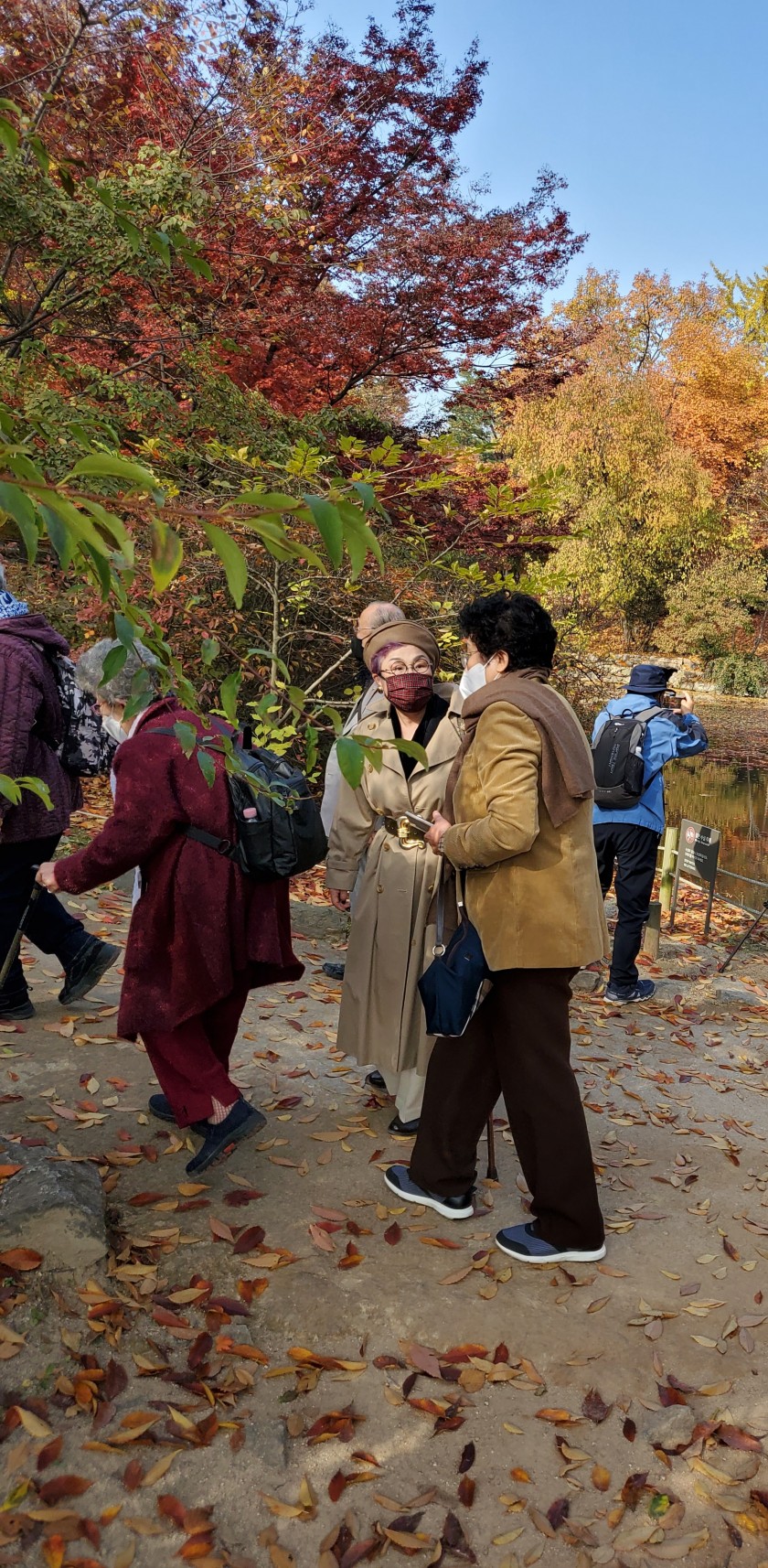 November 5th was the beautiful autumn day. Twenty people got together in front of Honghwamun, the main gate of Changgyeong Palace and enjoyed the stroll in the palace. In groups of twos and threes, members took pictures under the trees with fantastic color, sat down around the pond 'Chundangji' for a brief rest,  or greeted one another sharing recent personal matters.