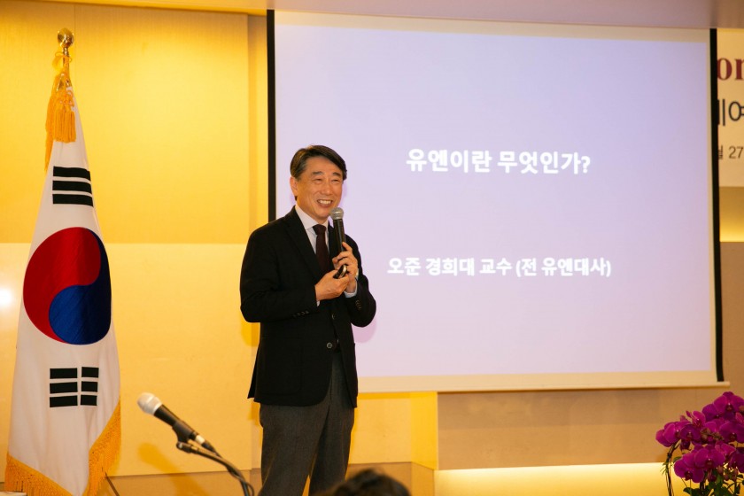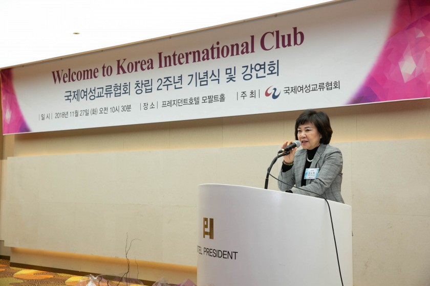 On November 27th from 10:30 to 2 o'clock, Welcome to Korea International Club had its 2nd Anniversary celebration and special lecture on the role of United Nations and the situation of Korea. The President of WKIC, Jungsook Kim made an opening remark thanking all the support and love that members have showed to make contribution which made the 2nd anniversary possible. She also expressed her gratitude towards people who went to Indonesia with enthusiasm to give her hand during the election for ICW's presidency. It was followed by the congratulatory speech of Ms. Yeonsook Lee,the former 2nd State Minister for Political affairs. She put an importance on using women's sensitivity and delicacy to take the lead making the difference for the betterment of life and delivered the wish WKIC doing the very job for the empowerment of women. Congresswoman Soonrae Kim also made a powerful congratulatory speech and so did the President of Korean National Council of Women Keumsook Choe.