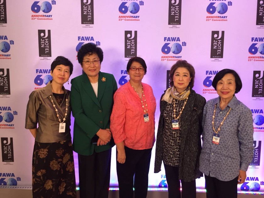 FAWA was first conceived in 1958 "so as to effect not only closer relations but also more effective planning and execution of programs for social welfare"  From Sept. 25th till Oct. 1st, WKIC President Jungsook Kim, WKIC Board members Youngsoon Lee, Youngja Lee and Secretary General Sunny Shin went on a trip to Manila to take part in the 23rd FAWA convention. It was its 60th anniversary celebration as of this year and the them was Our Heritage -Peace, Our challenge- Sustainable Development.