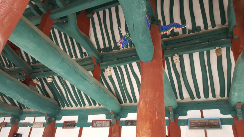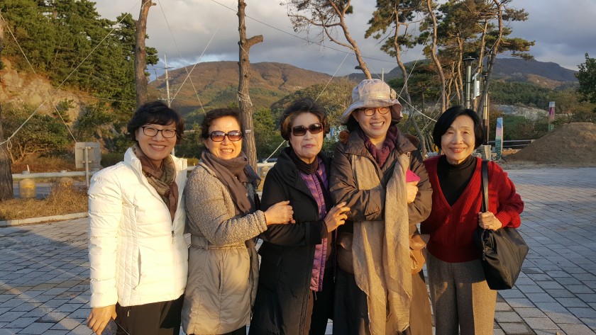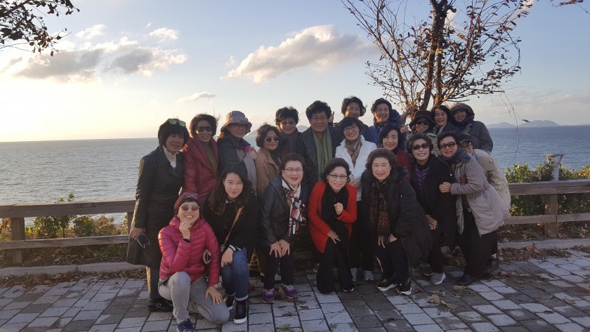 Sunwoonsa Temple was established around a thousand years ago during Baikjae Dynasty. Located in Jeollabook-do Province, it took about 3 hours by bus. Passing by the humongous zelkova walkway and beautiful maple trees, you'll get to the entrance of the temple. Once you get there, right around the main sanctuary was the cluster of camellia, which is designated as natural monument # 184. We're lucky to have a commentator to help us understand the history of the temple and to give us some of the background knowledge of all these beautiful monuments. The temple is also very popular due to the red flowers called 'magic lily', which were in full blossom about a month before we get there. What a pity. Instead, we were greeted by the colorful falling leaves and ever green Song-Ack tree. On the way there, we saw some places raining and worried because we're not properly prepared for it. Once we got there, though, indigo blue sky welcomed us.