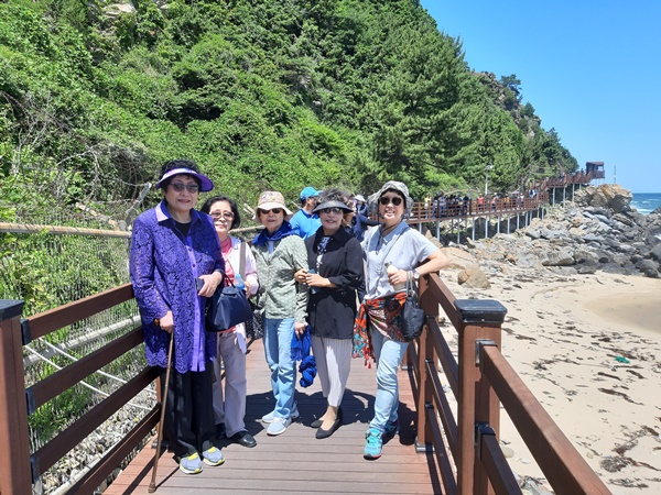The following day, we went to Jungdong-Simgok Badabuchae-kil which is the only place that has marine terrace built naturally about 23,000,000 years ago. Such a beautiful place to be! Suncruise hotel which is also very famous for its architectural shape was right by it and we had Bibimbap at the restaurant on the 8th floor. On the way back home, we drove by the Hangyeryeong Pass with various shapes of mountaintop. Such a marvelous scenery. You wouldn't want to miss it for the world~