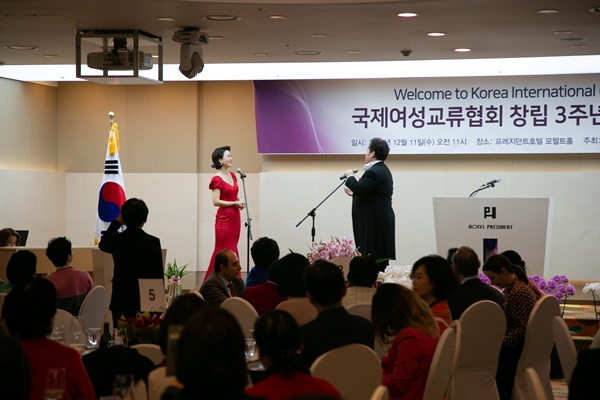 On Wed. Dec 11th, Welcome to Korea International Club had its 3rd Anniversary celebration at President Hotel on the 31st floor. The registration started at 10: 30 and a lot of people showed up early. At 11a.m. sharp, the celebration started with Pledge of Allegiance.