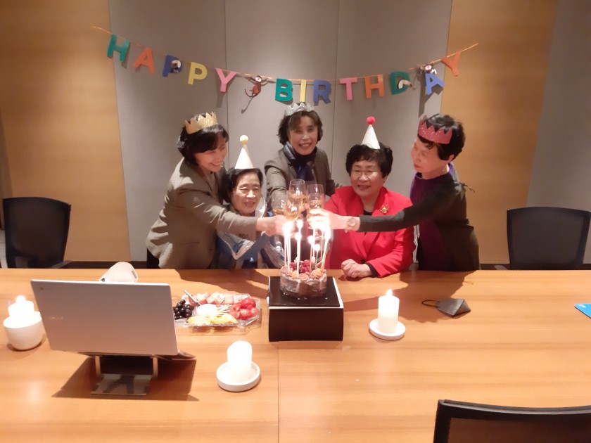 WCI had a 35th Anniversary celebration through Zoom meeting on May 4th at 10pm Korean Standard Time. Over 220 people from all over the World got together and celebrated the birthday of WCI which was founded 35 years ago. Some Board members of WKIC gathered at Mayplace hotel conference room and had a toast making the day a festive event. Dr. Kim made a Keynote speech introducing some of the special activities of UN Consultative status and SDGs. Marian Adair Spirit Award was given to Ms. Young Bok Lee for her endless effort for the development of WKIC.
