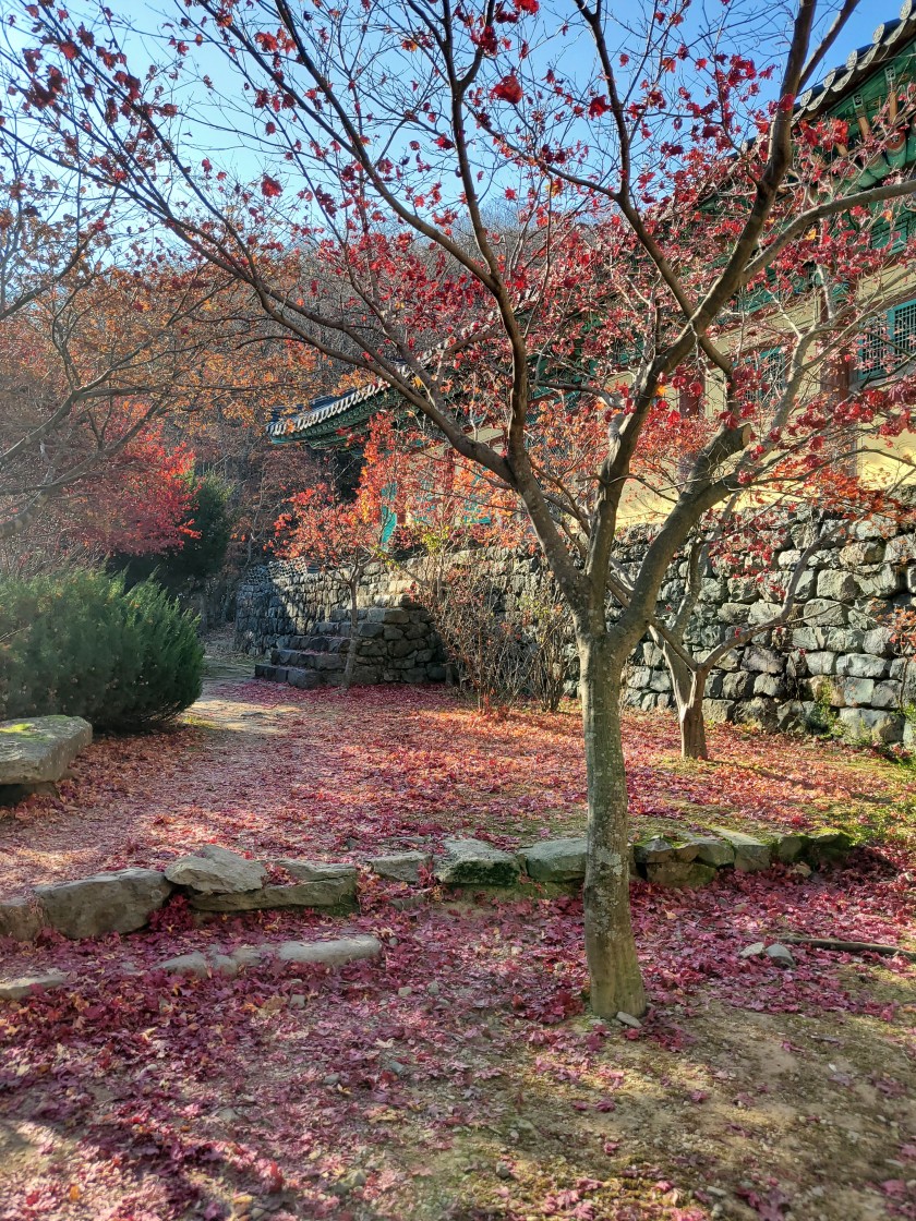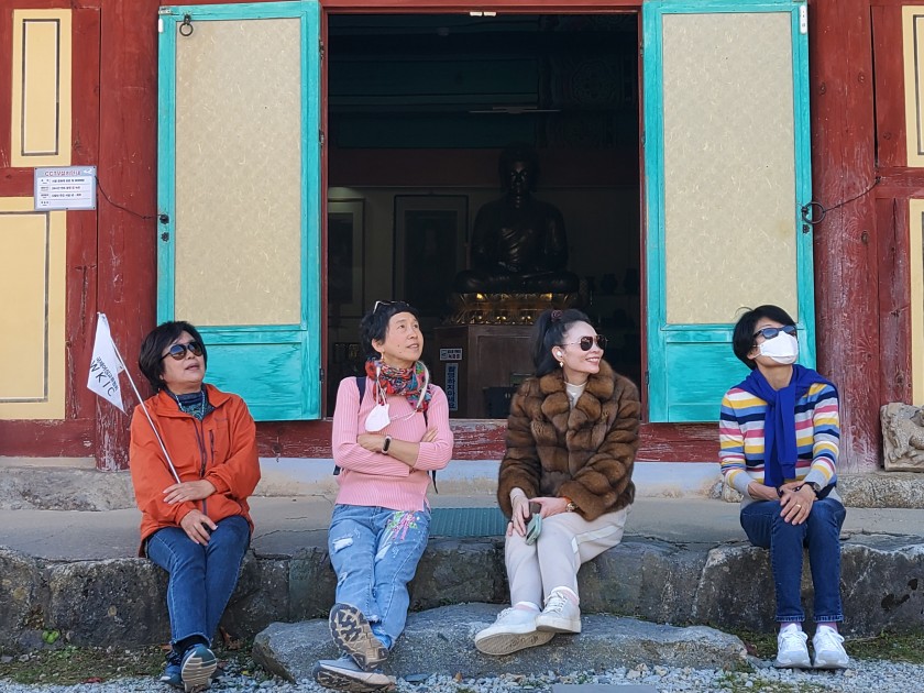 One sunny Autumn day, 27 people got together and went ahead to Jeoksangsan Mountain, in Muju area in Jeollabuk-do Province. The trip to historic places has been one of the most popular programs of WKIC and we haven't had any for a while due to Covid since 2020. We rented a bus and as soon as we got on board, we started to eat Kimbab ( We can't call it a picnic without Kimbab..haha). Dr. Kim gave a welcoming speech and led a sing a song session until we got to the Mountain. Such a fun time. Just a day before, the President of International Council of Women, Martine and the treasure, Ludovina came to Korea, and they joined us as well. One of the principal work of Welcome Club, welcoming foreigners~~.