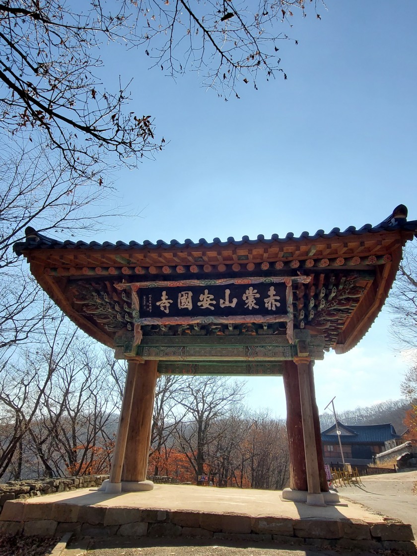 Jeoksangsan Mountain got its name since it looks like it wears the long red skirt especially during the Fall season, but we were totally disappointed to see no foliage on trees. We came too late. We saw the artificial lake for the power plant okay, and there were the fortress as well.