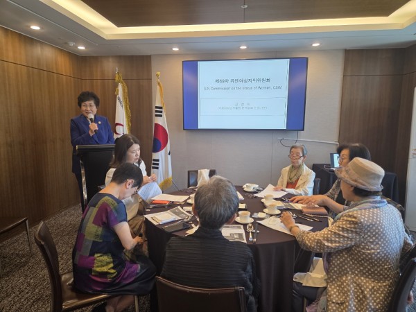 During the report, Kim Jung-sook, President of WKIC, explained the history and significance of UN-centric discussions on women's advancement and introduced the parallel events held at UNCSW69 by organizations such as Welcome Clubs International, the Korean Women's Political Culture Institute, and the International Council of Women. Dr. Kim Eun-kyung, a Senior Research Fellow at the Korean Women's Development Institute, shared her observations from UNCSW69, focusing on the main agenda, schedule, and key discussion points. The primary agenda items for UNCSW69 were the implementation of the Beijing Declaration and Platform for Action and the review and evaluation of the outcomes of the 23rd special session of the General Assembly. Based on these, ministerial roundtables, interactive dialogues, general debates, and NGO sessions were conducted. Six action agendas for Beijing+30 were adopted, specifically including: utilizing technology for equality, freedom from poverty, zero violence, ensuring full and equal decision-making power and restructuring power structures for this purpose, women, peace and security, and climate justice. Additionally, Dr. Kim Eun-kyung summarized and explained five tasks proposed by the Beijing+30 expert group and major NGO events.