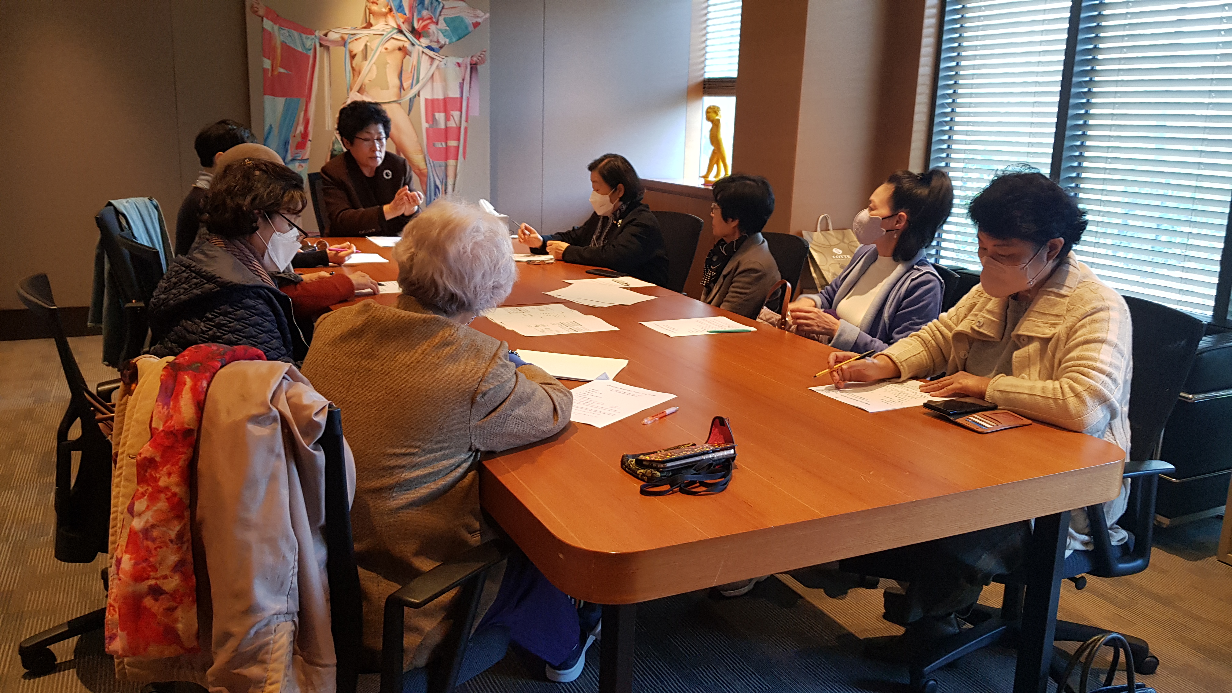 이번 이사회에는 김정숙 대표, 이민지 공동대표, 김경주, 안영애, 오경자, 오정의, 이일희, 지순영 이사와 홍문자 위원장, 신정선 총무가 참석했다.