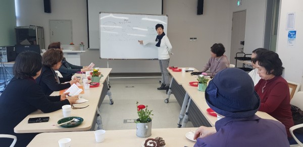 자주 사용되는 용어와 기본 패턴을 익혀나가고 있으며 국제여성교류협회의 신정선 총무가 강좌를 이끌어 가고 있다.