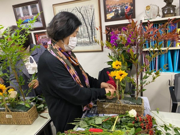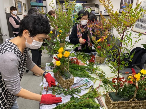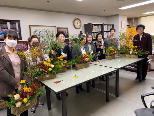 국제여성교류협회의 소모임 꽃꽂이교실이 10월 27일 화요일 2차시 수업을 진행했다.