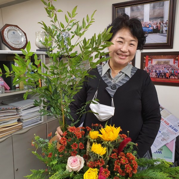 수업 참가자들은 협회 회원인 안숙자 한국디자인플라워협회 부이사장의 지도 아래 가을을 주제로 가을국화, 조, 해바라기 등을 이용해 가을 느낌이 작품 한껏 느껴지는 작품을 만들었다.