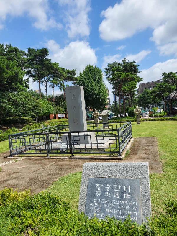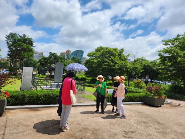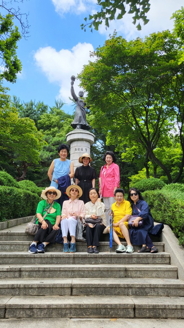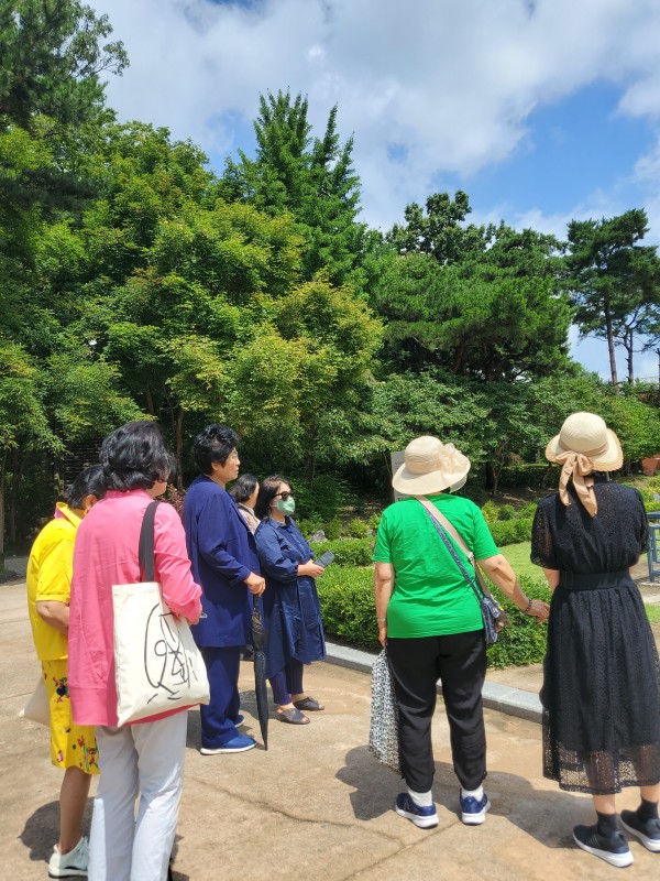 장마기간 중 폭우를 걱정했으나 아침부터 화창한 여름의 한가운데 8명의 회원들이 모여 장충단, 수표교의 역사를 배우다.