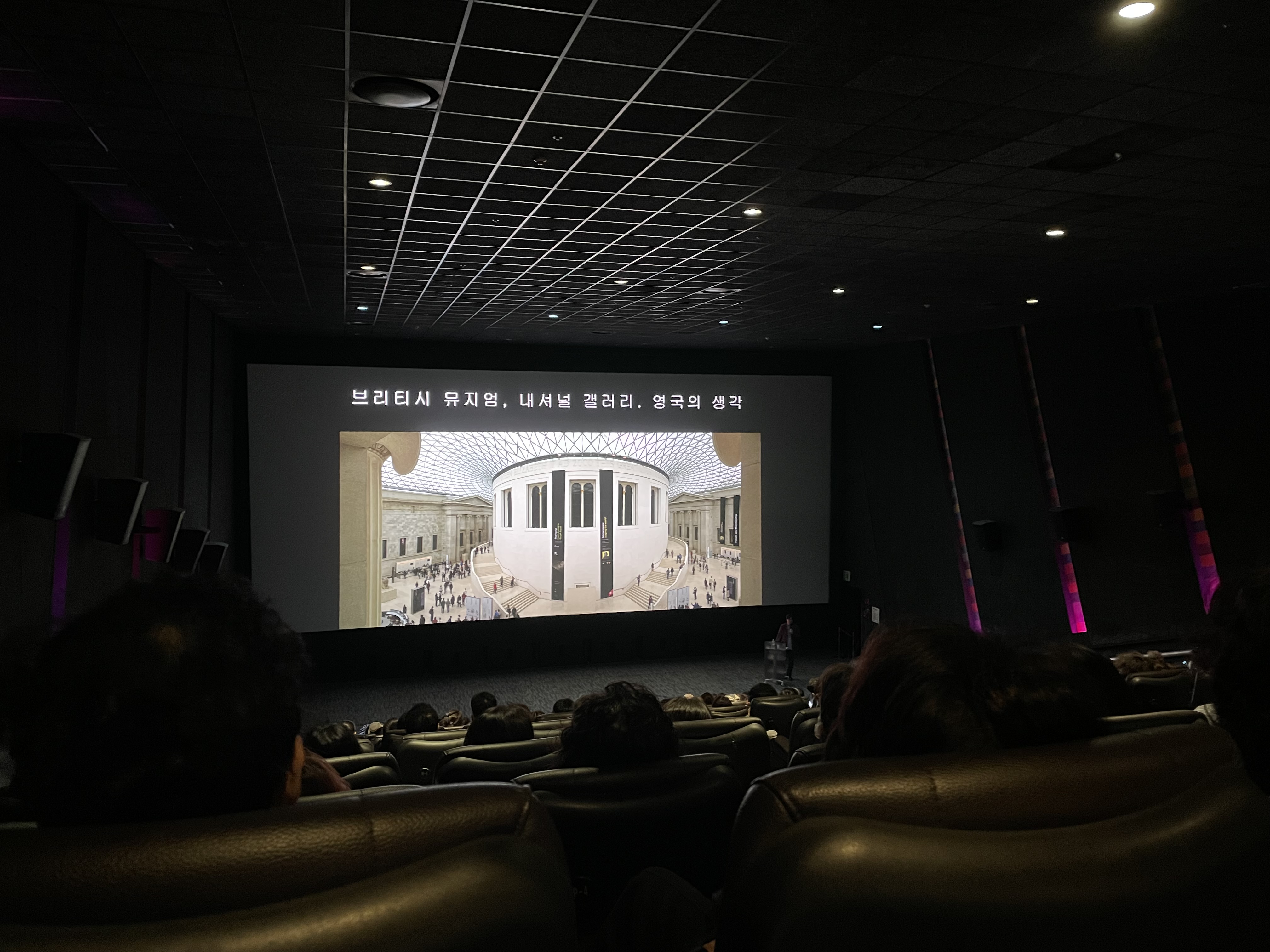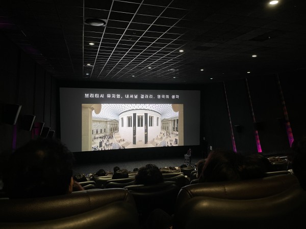 마침 세계 각국의 미술관을 설명해주면서 영상으로 감상할 수 있는 프로그램을 메가박스 시네도슨트에서 상영하고 있다고 해서 관람하게 되었는데 우리가 갔을 때 영상 주제는 영국의 브리티쉬뮤지엄과 내셔널갤러리였다. 영상과 함께하는 안현배 미술사학자의 해설은 미술관과 갤러리의 구조 및 설립 배경과 함께 소장품들의 특징 등을 전체적으로 이해하는데 큰 도움이 되었다.