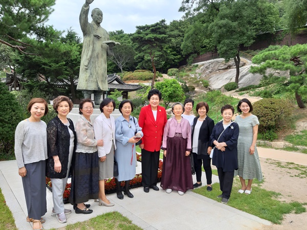 7월 10일 수요일에 김정숙, 이민지 회장과 몇몇의 이사가 서울특별시 종로구 이화장1길에 있는 이화장을 방문하였다. 워래 조선시대의 건물이며 8.15 광복직후 이승만 박사가 미국생활을 청산하고 한국으로 돌아왔을때 거처할 집이 없자 주변의 인사들이 그에게 기증하였던 집으로, 이화장은 이승만 박사가 대통령이 되자 내각의 조각을 발표하였던 조각정, 이화장의 관리와 유족들의 거처인 생활관으로 이루어져 있다. 영부인이었던 프란체스카여사의 이야기를 며느리인 조혜자씨로 부터 들으며 여성의 역할에 관해 숙고해볼 좋은 기회와 시간을 가졌다.