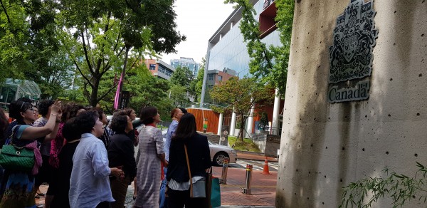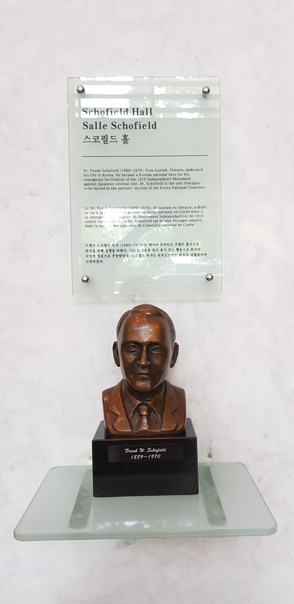 국제여성교류협회 회원들은 대사관 직원의 안내로 건물 외벽에 걸려있는 엠블럼과 대사관 정문 앞 고목의 상징성에 대한 설명을 듣고 스코필드홀로 이동했다. 스코필드홀은 3.1 운동의 실상을 해외에 알리는 등 한국의 독립운동을 적극적으로 지원했던 캐나다인 스코필드 박사를 기념하여 명명된 곳이다.