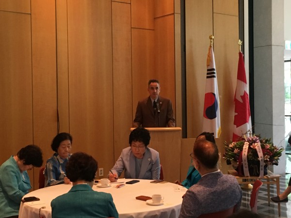 Micheal Danagher 대사는 강연을 통해 올해 6월 캐나다 밴쿠버에서 전세계 160여 개국에서 8,000여 명이 참가한 세계에서 가장 큰 양성평등과 여성과 소녀들의 건강, 권리, 복지에 대한 회의 Women Deliver Global Conference를 개최했고, 주한캐나다대사관에서도 위성 이벤트를 주최했음을 설명하면서 양성평등과 여성의 권리신장은 경제와 중산층 성장에 필요한 요소임을 강조했다. 또한 양성평등한 캐나다 연방내각 구성과 예산안, 그리고 연방정부 차원에서 성폭력 방지 전략 시도 등 캐나다의 여성 정책 및 권리 신장 정책에 대해 깊이 있게 설명했다.