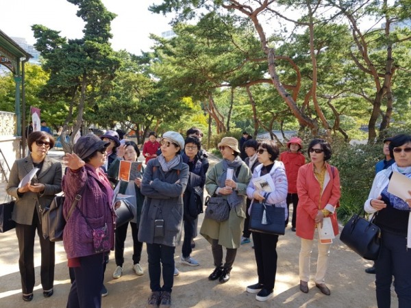 10월 13일, 25명의 탐방 참가자들이 1897년 고종이 선포한 대한제국을 찾아서 덕수궁과 그 일원을 둘러보다.