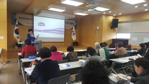 전 회의록 채택후 김정숙 회장이 slide show로 지난해 사업보고를 한 후, 윤유정 회계이사가 결산보고를 하다. 유인선 감사의 감사보고 후 2018 사업계획 및 예산심의를 거치다.